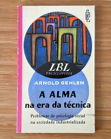 Partindo do original Die Seele im technischen Zeitalter: Sozialpsychologische Probleme in der industriellen Gesellschaft – publicado primeiro em 1949 e depois revisto e ampliado em 1957 – o autor propõe uma leitura incisiva: a técnica não é apenas “máquinas”, mas um ambiente total que molda comportamentos, valores e expectativas, criando novas tensões entre indivíduo e sociedade. Não é por acaso que este foi um dos livros mais lidos de Gehlen na Alemanha do pós-guerra. Esta edição portuguesa, da Livros do Brasil (Lisboa), integra a coleção “LBL Enciclopédia” (n.º 13) e foi traduzida do alemão por Manuela Pinto dos Santos. Embora não esteja datada, em catálogos editoriais aparece associada a abril de 1960.