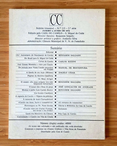 O Boletim da Casa de Camilo – S. Miguel de Ceide, 2.ª série, n.os 2-3 (jan.–jun. 1976) é uma edição especial comemorativa do 150.º aniversário do nascimento de Camilo Castelo Branco, pensada para leitores, investigadores e colecionadores camilianos. Reúne um vasto conjunto de estudos, documentos e curiosidades em torno da vida e da obra do romancista, tornando-se uma fonte imprescindível para quem deseja aprofundar o universo de Camilo.