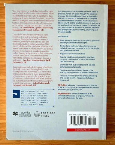 This fourth edition of Business Research offers a practical, hands-on guide through the research process. It is accessible and clear, and provides all the tools needed to embark on and complete successful research projects. Practical advice is balanced with strong academic rigour to give you a comprehensive grounding in research methods, so that you can decide on the most efficient, effective and appropriate way of collecting, analysing and presenting data.