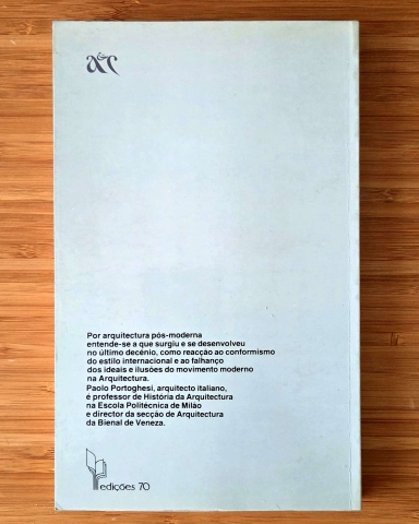Publicado em português em 1985 e integrado na coleção “Arte e Comunicação” (n.º 19) das Edições 70, este livro constitui um manifesto pioneiro da arquitetura pós-moderna e um marco no debate internacional sobre o futuro da disciplina.