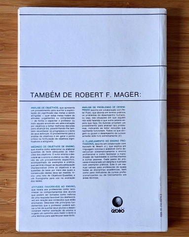A proposta pode não parecer inédita ou especialmente inovadora, mas é justamente a sensatez, a objetividade de Mager, a par de seu completo descaso pelos formalismos ao apresentar seus pontos de vista, que conferiram a esta obra o seu carisma. Sem mencionar que foi inauguradora da preocupação com o tema ‘objetivos educacionais’, que hoje domina avassaladoramente o cenário da Educação.” – excerto de texto retirado das badanas do livro