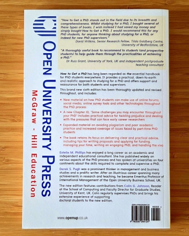 One of the most practical guides for doctoral life, How to Get a PhD demystifies the PhD journey – from choosing a topic and managing supervision to planning the thesis, writing efficiently and surviving the inevitable ups and downs. Authors Estelle M. Phillips and Derek S. Pugh speak from long experience in doctoral training, offering advice that is direct, realistic and remarkably applicable.
