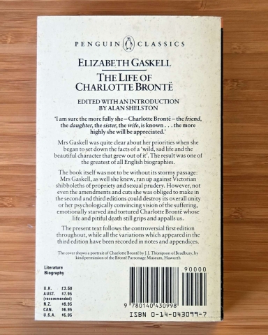 This Penguin Classics edition (1985) keeps the text accessible for today’s reader, balancing biography, social history and the moral pressures faced by a woman writer in the 19th century. You’ll also meet the world around Charlotte – class, religion, work, illness – and see how her imagination was forged in constraint as much as in ambition. It’s a page-turning biography and a key document of literary culture.