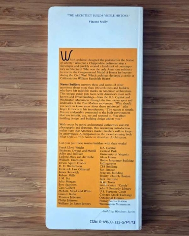 Master Builders answers these and many other questions about more than 100 architects and builders who have left indelible marks on American architecture. This unique guide puts faces with America's most well-known and loved buildings—from the U.S. Capitol and Washington Monument through the first skyscrapers and landmarks of the Post-Modern movement.