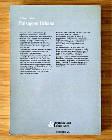 Publicado originalmente no Reino Unido em 1971 e editado em Portugal pelas Edições 70 em 1984, Paisagem Urbana é uma obra fundamental da arquitetura e do urbanismo e uma das mais influentes reflexões sobre o modo como percebemos e organizamos visualmente as cidades. O arquiteto e ilustrador britânico Gordon Cullen (1914-1994) desenvolve aqui o conceito de townscape – traduzido como paisagem urbana – entendido como a arte de tornar coerente e harmonioso o emaranhado de edifícios, ruas e espaços que compõem o ambiente urbano.