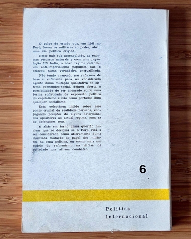 É aliás em torno dessa questão nuclear que se decidirá se o Perú virá a ser considerado como afloramento duma inusitada mutação do papel dos militares na cena política, ou como mais um rodeio do reformismo na defesa da sociedade que afirma combater.” – texto da contracapa