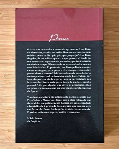 Terminada a leitura tão estimulante do livro escrito por Pires Veloso – Memórias – fiquei com a ideia reforçada que tinha dele: um patriota, um homem de um seriedade e frontalidade à prova de bala, alguém que sempre agiu em favor do Povo Português, desinteressadamente.»