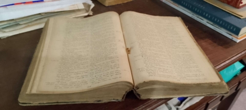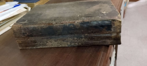 Miolo: sem escritos, apresentando marcas do tempo, algumas falhas nas margens, bastante manuseada, tem 2 páginas com um rasgo, ver fotos