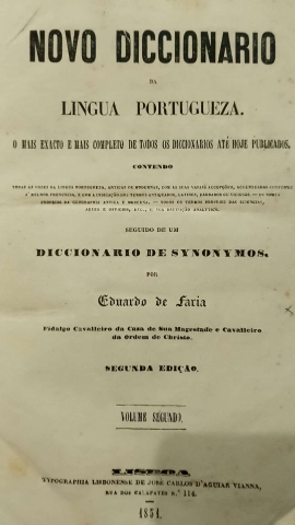 Dicionário 1851 Eduardo de Faria 2º Volume