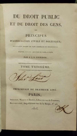 Du Droit Public et du Droit des Gens 1808 J. J. B. Gondon
