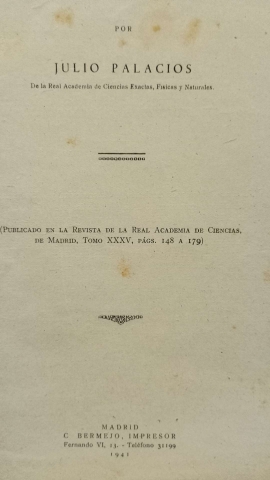 (Publicado en la Revista de la Real Academia de Ciencias, de Madrid, Tomo XXXV, págs. 148 a 179)
