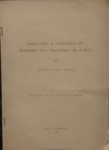 Notas sobre el recibimiento del Arzobispo Don Maximiliano de Austria, por: Antonio Fraguas Fraguas