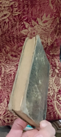 Capa com desgaste e marcas do tempo, miolo bom, contendo assinatura e uma página com fita.cola.