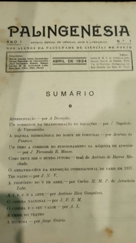 Palingenésia nº1 Faculdade Ciências do Porto 1934