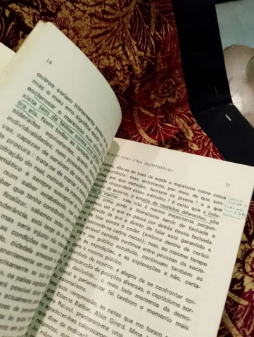Tem cinco páginas com pequenos sublinhados no prefácio só. tem assinatura de posse