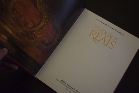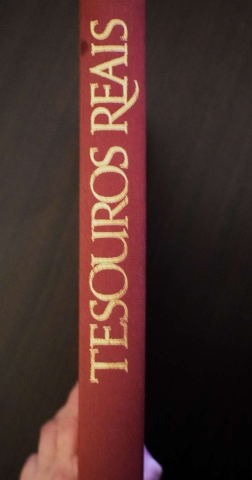 Catálogo da exposição «Tesouros Reais», mostra patente no Palácio Nacional da Ajuda em que foram apresentadas ao público as peças do fabuloso conjunto com a denominação genérica «Jóias e Pratas da Coroa», constituído por joalharia, simbologia real, pedras duras e prata religiosa e civil pertencentes à Corte portuguesa.