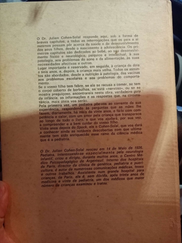 O livro é intitulado "Compreender e Cuidar da Criança" e foi escrito pelo Dr. Julien Cohen-Solal. Foi publicado pela Livraria Bertrand e aborda temas relacionados com a infância e puericultura. A obra pode estar disponível em dois volumes e a sua publicação data de cerca de 1978