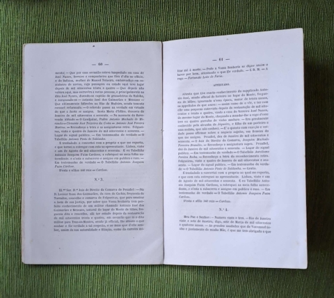 Forjou-se para esse fim uma publica-fórma falsa, e para que esta não podésse ser desmentida, um agente de Joaquim Maria Osorio veio com cartas e protecção d`este arrancar uma folha do livro dos assentos de baptismo á estalagem de Barrozas. O executor do crime já fugiu para o Brazil. Resta agora saber se seu principal auctor poderá zombar das leis, da moralidade e da justiça. (...)"
