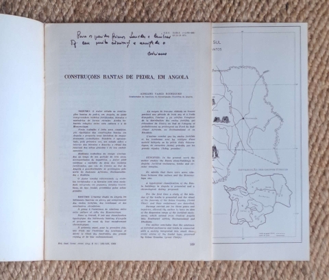 Sep. Bol. Inst. Invest. cient. Ang. (Luanda). 5 (2); B.; 169/189 pág.+ (1) fl.+11 fls. extratexto com fotografias+ (1) fl+2 mapas desdobvs. extratexto; muito ilustrado; 295 mm. Com um ex-libris e com dedicatória do autor.