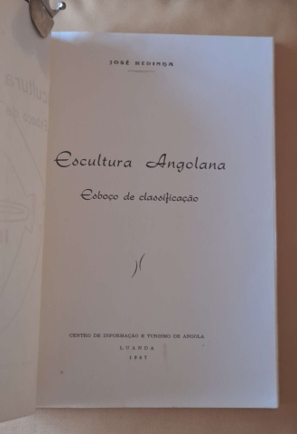 REDINHA, José - ESCULTURA ANGOLANA. Esboço de classificação. Centro de Informação e Turismo de Angola. Luanda. 1967. B., com umas ligeiras quebras na capa de brochura da frente; 38+ (1) pág.; il.; 245 mm. Raro.