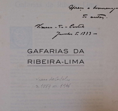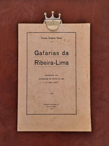 SIMÕES VIANA, Tomaz - Gafarias da Ribeira-Lima. Separata do Almanaque de Ponte de Lima, 8.º Ano- 1933, numerada e assinada. B.; 7 págs.; 225 mm. Com dedicatória do Autor.