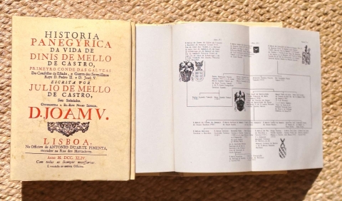 MELO de CASTRO, Julio de - Historia Panegyrica da Vida de Dinis de Mello e Castro, Primeyro Conde das Galveas do Conselho de Estado e Guerra dos Serenissimos Reys D. Pedro II e D. João V. Anno de 1744.