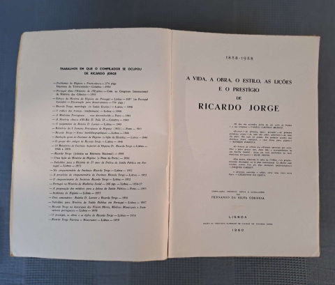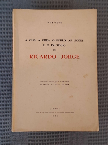 SILVA CORREIA, Fernando da - 1858-1958 - A VIDA, A OBRA, O ESTILO, AS LIÇÔES E O PRESTÌGIO DE RICARDO JORGE. Compilação, Prefácio, Notas e Conclusões por...Lisboa. 1960. B.; XXII+(2)+427 págs.+ (10) fls. com ilustrações extratexto; il.; 250 mm. Com pequenas anotações irrelevantes.