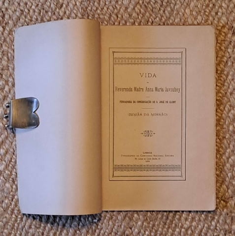 Vida da Reverenda Anna Maria Javouhey. Fundadora da Congregação de S. José de Cluny. (Irmãs da Missão). 1899. B.; 53 págs.+3 ilusts. extratexto; il.; 260 mm. Com uma pequena assinatura e uma estampilha na capa de brochura da frente e com lombada nova.