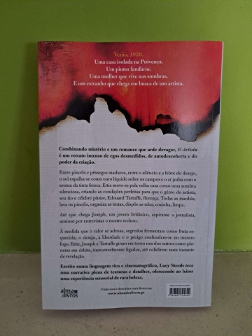 Entre pincéis e pêssegos maduros, entre o silêncio e a febre do desejo, o sol espalha-se como ouro líquido sobre os campos e o ar pulsa com o aroma da tinta fresca. Ettie move-se pela velha casa como uma sombra silenciosa, criando as condições perfeitas para que o génio do artista, seu tio e célebre pintor, Edouard Tartuffe, floresça.