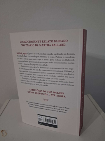 Maine, 1789. Quando o rio Kennebec congela e devolve o corpo de um homem, Martha Ballard é chamada a examiná-lo. Parteira e curandeira respeitada, Martha conhece como ninguém os segredos que se escondem por detrás das portas fechadas de Hallowell. Regista-os com precisão no seu diário: nascimentos, mortes, crimes, escândalos.