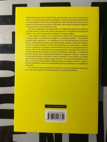 Num elogio à revolta e à sua ascensão ao poder, Di Cesare questiona-se ainda sobre os fenómenos contíguos, a revolução perdida ? nos muitos sentidos desta expressão ? e a resistência. Se os movimentos que ocupam as praças, evidenciando o declínio da representação, exigem o direito de aparecer e entrar no espaço público, a revolta vai mais longe: em vez de aceitar o conflito interno, questiona os próprios contornos desse espaço. Os protagonistas são muitos: dos novos desobedientes aos que praticam o anonimato na Internet, dos que denunciam infrações aos que se declaram «invisíveis». O Tempo da Revolta oferece uma interpretação política da máscara e fala de «zonas de irresponsabilidade»; esconder-se para se mostrar é um desafio ao Estado que condena qualquer máscara que não seja a sua, ao poder financeiro sem rosto, à economia descarnada, indiferente aos seus efeitos; revela-se, assim, a enorme dissimetria, expõe-se a disparidade de forças e denuncia-se a vigilância planetária.