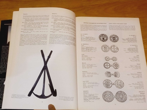 Profusamente ilustrado no texto com reproduções de obras e fotografias, maioritariamente fotografias de armas por Rainer Daehnhardt e fotografias do Museu de Marinha por Reinaldo de Carvalho. Obra bilingue em português e inglês. Estudo de numismática portuguesa incidindo sobre os reinados dos séculos XIV a XVI. A obra contém ainda resenhas biográficas de alguns vultos importantes e ilustrações de alguns objectos que imprimiram especial significado a este período da História de Portugal.