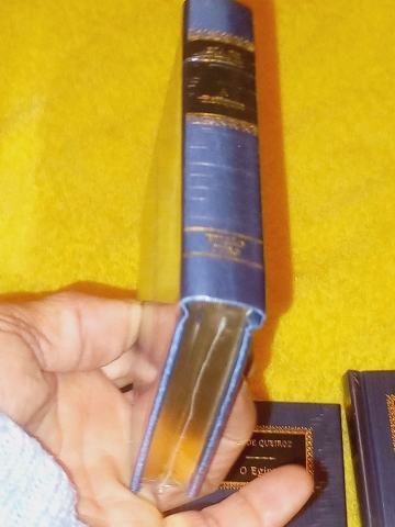 Edição de colecionador, encadernação capa dura em azul com detalhes dourados e cortes laterais dourados.
