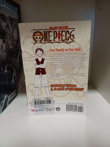 Edição omnibus (3 em 1). Incluí os volumes 1, 2 e 3 de One Piece em inglês.