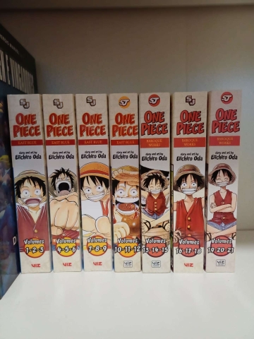 Edição omnibus (3 em 1). Incluí os volumes 16, 17 e 18 de One Piece em inglês.