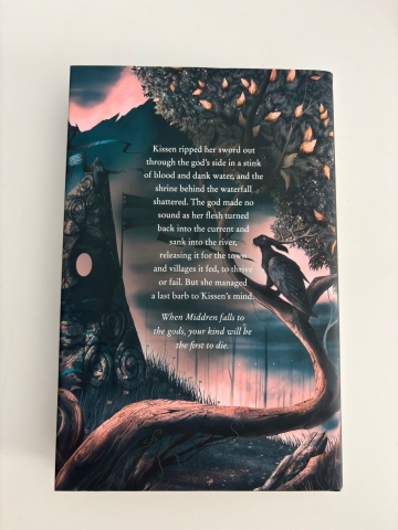 Kissen’s family were killed by zealots of a fire god. Now, she makes a living killing gods, and enjoys it. That is until she finds a god she cannot kill: Skedi, a god of white lies, has somehow bound himself to a young noble, and they are both on the run from unknown assassins.