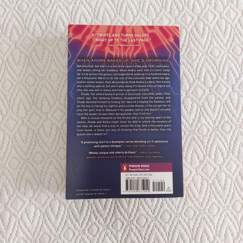 When Andra wakes up, she's drowning. Not only that, but she's in a hot, dirty cave, it's the year 3102, and everyone keeps calling her Goddess. When Andra went into a cryonic sleep for a trip across the galaxy, she expected to wake up in a hundred years, not a thousand. Worst of all, the rest of the colonists—including her family and friends—are dead. They died centuries ago, and for some reason, their descendants think Andra's a deity. She knows she's nothing special, but she'll play along if it means she can figure out why she was left in stasis and how to get back to Earth. Zhade, the exiled bastard prince of Eerensed, has other plans. Four years ago, the sleeping Goddess's glass coffin disappeared from the palace, and Zhade devoted himself to finding it. Now he's hoping the Goddess will be the key to taking his rightful place on the throne—if he can get her to play her part, that is. Because if his people realize she doesn't actually have the power to save their dying planet, they'll kill her. With a vicious monarch on the throne and a city tearing apart at the seams, Zhade and Andra might never be able to unlock the mystery of her fate, let alone find a way to unseat the king, especially since Zhade hasn't exactly been forthcoming with Andra. And a thousand years from home, is there any way of knowing that Earth is better than the planet she's woken to?