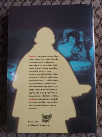 Eminência é um relato de intrigas políticas, de amor e de amizade, situado na Espanha convulsa de Carlos IV e da Guerra da Independência, que não pretende reflectir minuciosamente uma época, mas explorar o seu espírito, mistura de alento renovador, superstição e fanatismo. O seu protagonista é o último Grande Inquisidor, um homem tolerante a quem cabe viver um paradoxo: presidir à agonia da instituição que melhor encarnou o obscurantismo e a intolerância na História.