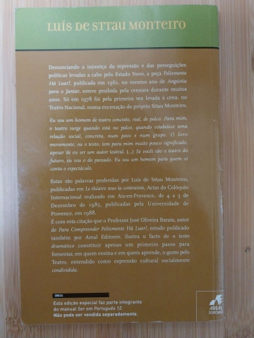 É com esta citação que o Professor José Oliveira Barata, autor de Para Compreender Felizmente Há Luar!, estudo publicado também por Areal Editores, ilustra o facto de o texto dramático constituir apenas um primeiro passo para fomentar, em quem ensina e em quem aprende, o gosto pelo Teatro, entendido como expressão cultural socialmente condividida.
