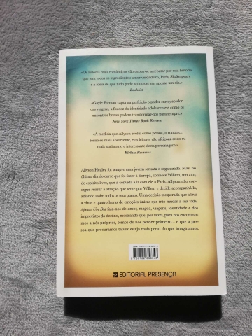 Allyson Healey foi sempre uma jovem sensata e organizada. Mas, no último dia do curso que foi fazer à Europa, conhece Willem, um ator, de espírito livre, que a convida a ir com ele a Paris. Allyson não consegue resistir à atração que sente por Willem e decide acompanhá-lo, adiando assim todos os seus planos. Uma decisão inesperada que a leva a vinte e quatro horas de emoções únicas que irão mudar a sua vida. Apenas Um Dia fala-nos de amor, mágoa, viagens, identidade e dos imprevistos do destino, mostrando que, por vezes, para nos encontrarmos a nós próprios, temos de nos perder primeiro...
