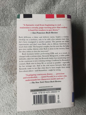 Ruth Jefferson is a labor and delivery nurse at a Connecticut hospital with more than twenty years' experience. During her shift, Ruth begins a routine checkup on a newborn, only to be told a few minutes later that she's been reassigned to another patient. The parents are white supremacists and don't want Ruth, who is African American, to touch their child. The hospital complies with their request, but the next day, the baby goes into cardiac distress while Ruth is alone in the nursery. Does she obey orders or does she intervene?