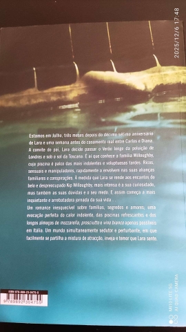 Estamos em Julho, três meses depois do décimo sétimo aniversário de Lara e uma semana antes do casamento real entre Carlos e Diana. A convite do pai, Lara decide passar o Verão longe da poluição de Londres e sob o sol da Toscana. É aí que conhece a família Willoughby, cuja piscina é palco das mais indolentes e voluptuosas tardes. Ricos, sensuais e manipuladores, rapidamente a envolvem nas suas alianças familiares e conspirações. À medida que Lara se rende aos encantos do belo e despreocupado Kip Willoughby, mais intensa é a sua curiosidade, mas também as suas dúvidas e o seu medo. E assim começa a mais inquietante e arrebatadora jornada da sua vida…