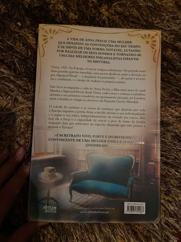 A VIDA DE ANNA FREUD. UMA MULHER QUE DESAFIOU AS CONVENÇÕES DO SEU TEMPO E SE IMPÔS DE UMA FORMA NOTÁVEL, LUTANDO POR REALIZAR OS SEUS SONHOS E TORNANDO-SE UMA DAS MELHORES PSICANALISTAS INFANTIS DA HISTÓRIA. Viena, 1923. Na Europa vivem-se tempos turbulentos. No período entre duas grandes guerras mundiais, uma jovem divide-se entre a devoção ao pai, Sigmund Freud o fundador da psicanálise , de quem é secretária e confidente, e o desejo de realizar os próprios sonhos. Este livro acompanha a vida de Anna Freud, a filha mais nova do casal Martha e Sigmund Freud, desde Viena, onde cresce e começa a trabalhar, abrindo o seu primeiro consultório no apartamento dos pais, até Londres, onde a família se refugia no alvorecer da Segunda Guerra Mundial. O eclodir do nazismo e os ventos de mudança que alastram por toda a Europa impelem a jovem Anna a decidir afirmar a sua individualidade e a seguir o seu rumo, independente da vontade dos outros. Mas, terá ela a força e a capacidade de vencer o peso do nome da família, enquanto luta por sobreviver ao espectro ditatorial que está prestes a destruir a Europa? «UM RETRATO VIVO, FORTE E INCRIVELMENTE CONVINCENTE DE UMA MULHER ÚNICA E CORAJOSA!» GOODREADS