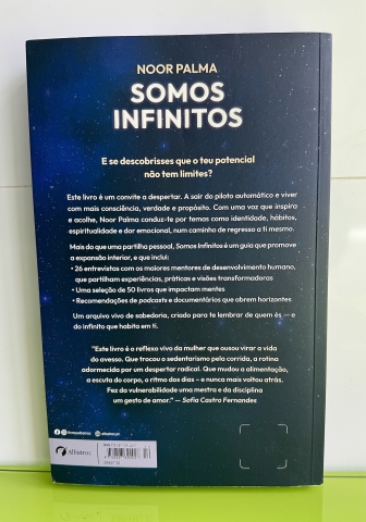 Este livro é um convite a despertar. A sair do piloto automático e viver com mais consciência, verdade e propósito. Com uma voz íntima e transformadora, Noor Palma guia-te por temas como identidade, hábitos, espiritualidade, dor emocional e expansão interior, num caminho de regresso a ti mesmo. Mais do que uma partilha pessoal, Somos Infinitos é um guia prático e inspirador para a tua expansão interior, com: