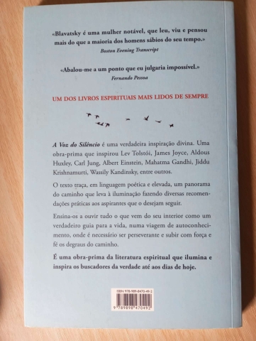 A Voz do Silêncio é uma verdadeira inspiração divina. Uma obra-prima que inspirou Lev Tolstói, James Joyce, Aldous Huxley, Carl Jung, Albert Einstein, Gandhi, entre muitos outros. O texto traça em linguagem poética e elevada, um panorama do caminho que leva à iluminação fazendo diversas recomendações práticas aos aspirantes que o desejam seguir. Ensina-nos a ouvir tudo o que temos nosso interior como o verdadeiro guia para a vida.