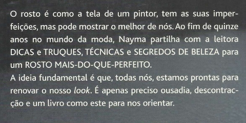 A ARTE DE UM ROSTO PERFEITO. *** Nayma *** Lisboa: Publicações Dom Quixote, 2004. Colecção: Temas de Hoje – Guias. (23,5 x 16 cm.) com 103 + [1] pp. Com várias ilustrações a p/b. e a cores. Capa flexível, com badanas. Bom exemplar. Capa com pequenas marcas de manuseamento, encontrando-se limpa e em bom estado. Páginas bem conservadas e limpas. *** Primeira edição deste livro, no qual a Autora, conhecida ex-modelo, fornece um conjunto de dicas, truques, técnicas e segredos de beleza para um rosto perfeito. *** Portes: envio gratuito em correio normal (tarifa especial para livros) * envio em correio registado: 1,70
