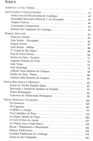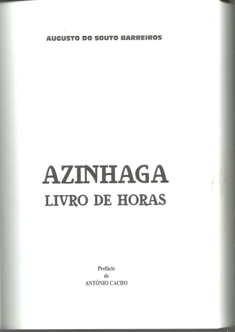 AZINHAGA – LIVRO DE HORAS. *** Augusto do Souto Barreiros *** Prefácio de António Cacho *** Fotografias de: Augusto Bobone | Salazar Dinis | Hilário do Souto Barreiros | Manuel Jorge Gaião | Diogo Cebola | Foto Almeida – Porto de Mós *** [Golegã]: Câmara Municipal da Golegã / [Azinhaga]: Junta de Freguesia de Azinhaga, [Sem ind. de ano: 1995 (?) – data do Depósito Legal e do prefácio]. (Fotocomposição, montagem e impressão: Tip «A Persistente» - Chamusca). (23 x 16 cm.) com [14] + IV + 212 + [2] pp. Com várias ilustrações a p/b.. Capa flexível. Exemplar razoável. Capa com marcas de manuseamento, pequenas perdas de cor em alguns pontos, vincos muito discretos e um pouco gasta nas margens e na lombada, mas, de um modo geral, ainda bastante apresentável. Páginas bem conservadas e limpas. *** Primeira edição desta invulgar monografia consagrada à freguesia goleganense de Azinhaga, conhecida sobretudo por ser o berço do escritor José Saramago, que, naturalmente, é também referido na obra. (Índice na imagem 4). *** Portes: envio gratuito em correio normal (tarifa especial para livros) * envio em correio registado: 1,70