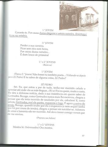 BOCAGE, ELE MESMO! *** Fernando Cardoso *** Proscénio: Justino Mendes de Almeida [Reitor da Universidade Autónoma de Lisboa / Secretário-Geral da Academia das Ciências de Lisboa] *** Apontamento: Raimundo Serrão *** Lisboa: Portugalmundo, 1999. (24,5 x 17,5 cm.) com 125 + [3] pp. (a numeração inclui as folhas que ficam coladas à parte de dentro da capa e da contracapa). Com muitas ilustrações a p/b.. Capa dura. Exemplar razoável. Capa com pequenas marcas de manuseamento e um ligeiro desgaste nos cantos exteriores e nas extremidades da lombada, mas, globalmente, ainda em bom estado e limpa. Páginas bem conservadas e limpas, mas algumas apresentam alguns sublinhados feitos com régua e esferográfica que, a um olhar mais desatento, até parecem próprios da edição. *** Primeira edição do texto integral de uma peça teatral, representado pela primeira vez no Cine-Teatro Luísa Todo, em Dezembro de 1971, com substanciais cortes, em cinco folhas do original, efectuados pela Comissão de Exame e Classificação dos Espectáculos, como mostra um documento incluído no livro. Escreve Raimundo Serrão, num dos textos de apresentação: “Em «Bocage, Ele Mesmo!» o autor assume uma postura de “advogado de defesa” do genial poeta. E quem melhor do que Fernando Cardoso para escrever tal obra dada a sua qualidade de causídico, de poeta de grande sensibilidade e ainda a circunstância de também ter sido «vigiado» pelas «Moscas» do tempo? Fernando Cardoso procura (com êxito) transmitir ao público que Bocage não é um «fazedor» de anedotas e versos eróticos torpes tal como o vulgo o concebe, ficando a sua pretensa leviandade principalmente a dever-se à “tísica” que ceifou a vida das suas musas reais. Esta obra, quer pela fidelidade à verdadeira dimensão interior do poeta quer porque retrata a sociedade decadente da época, pode, quando se revele inviável uma representação completa ou parcial, ser objecto de leitura comentada a nível escolar. Será um modo de combater, como afirmou Olavo Bilac, a criminosa calúnia de Bocage ter sido «autor de versos tolos e errados» e se reabilitar «o grande arquitecto da expressão verbal, o admirável artista da palavra, o inexcedível metrificador».” *** Portes: envio gratuito em correio normal (tarifa especial para livros) * envio em correio registado: 1,70