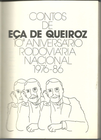 CONTOS DE EÇA DE QUEIROZ. [10.º Aniversário Rodoviária Nacional 1976-86]. *** [Eça de Queirós] *** [Prefácio]: António Brito da Silva [O Presidente do Conselho de Gerência] ***[Sem ind. de local: Lisboa (?)]: Rodoviária Nacional, E.P. – Comissão do 10.º Aniversário, 1986. (21 x 15 cm.) com 173 + [3] pp. Com algumas ilustrações a p/b.. Capa flexível. Exemplar razoável. Capa com marcas de manuseamento, algumas arranhadelas, um pouco empoeirada, com manchas (especialmente importantes e concentradas na contracapa) e um pouco gasta nas margens e na lombada. Apesar de um pouco envelhecida e bastante manchada na contracapa, de um modo geral, está ainda apresentável. Páginas globalmente bem conservadas e limpas, embora apresentem um tom amarelecido e algumas pequenas manchas de acidez, que incidem praticamente apenas nas primeiras e nas últimas. *** Primeira edição desta obra comemorativa do 10.º Aniversário da Rodoviária Nacional, que reúne alguns dos melhores contos de Eça de Queirós, antecedidos pelos textos “Ler e Viajar – Duas Formas de Comunicar” e “Um Breve Apontamento sobre Eça de Queirós”, além de uma bibliografia sumária do escritor poveiro. (Índice dos contos na imagem 4). *** Portes: envio gratuito em correio normal (tarifa especial para livros) * envio em correio registado: 1,70