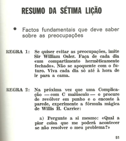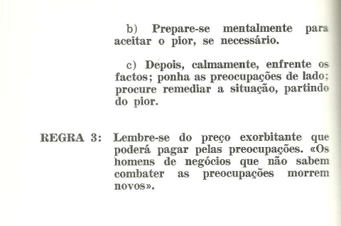CURSO DE RELAÇÕES HUMANAS. 2.ª Parte – Fascículo N.º 7: Como Vencer as Preocupações e Iniciar uma Vida Nova. *** Director: William B. Steed *** [Este fascículo, até à página 52, é baseado no original norte-americano How to Stop Worryng and Start Living de Dale Carnegie] *** Lisboa: Instituto Latino de Relações Humanas, [Sem ind. de ano: muito provavelmente da primeira metade da década de 1970]. (17 x 12 cm.) com 84 + [4] pp. Capa flexível. Bom exemplar. Capa com marcas de manuseamento e um ligeiro desgaste nas margens, mas, globalmente, ainda em bom estado e limpa. Páginas bem conservadas e limpas. *** Provável primeira edição portuguesa deste fascículo, enquadrado num Curso de Relações Humanas, que pretende fornecer instrumentos, sobretudo mentais, que ajudem a vencer preocupações e a iniciar uma nova vida. Além de uma introdução por Dale Carnegie e da lição propriamente dita contida neste sétimo fascículo, o livro inclui também quatro importantes artigos de autores mundialmente consagrados [André Maurois, David Dunn, John A. Schindler, Orison Swett Marden] que, sob diversos aspectos, estudaram os fenómenos ligados às relações humanas, que confirmam e valorizam as ideias e ensinamentos expostos na lição, apresentando novos ângulos de um ponto de vista comum. (Resumo da lição nas imagens 3 e 4). *** Portes: envio gratuito em correio normal (tarifa especial para livros) * envio em correio registado: 1,70